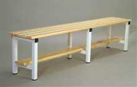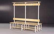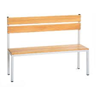 BANCS DE VESTIAIRE AVEC DOSSIER Structure métallique émaillée au four en couleur blanche. Siège en bois de pin de 1e qualité. Est constitué par quatre lattes de 80 x 25 mm, une traverse et un dossier de 140 x 25 mm.Toutes les pièces en bois sont vernies et ont leurs coins arrondis. |